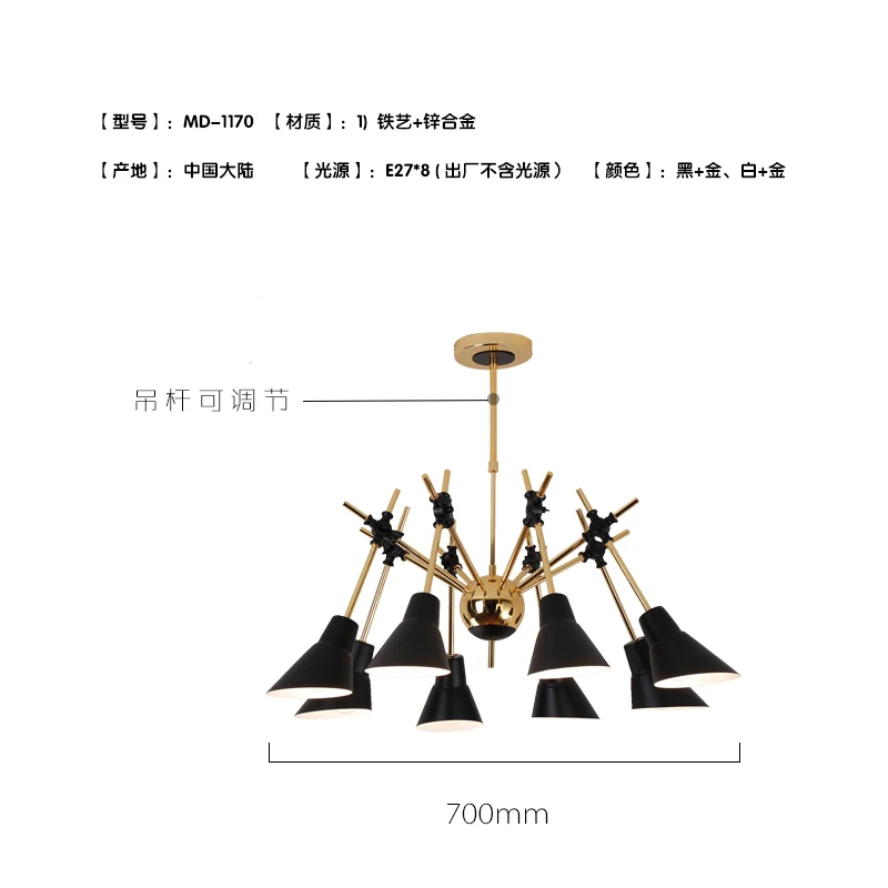 Product Name: 북유럽 포스트 모던 미니멀리스트 스파이더 샹들리에 크리 에이 티브 단철 거실 다이닝 바 바 멀티 헤드 샹들리에 키즈 룸
