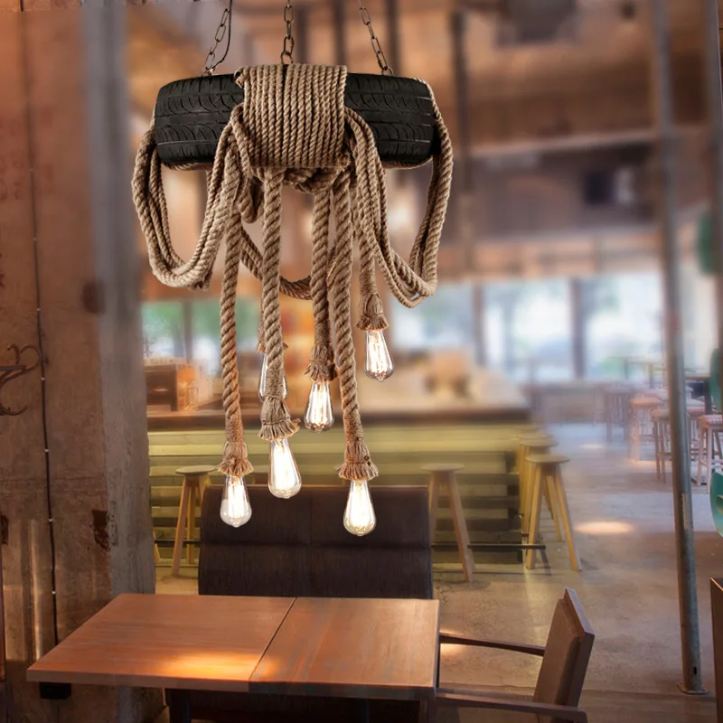 Special Offer 빈티지 미국 국가 대마 밧줄 타이어 펜 던 트 조명 매달려 램프 고무 바퀴 서 스 펜 션 홈 바 거실 조명 Discount [NEW!!] Today!