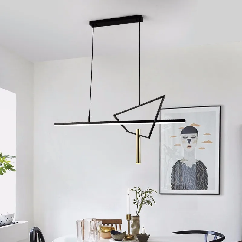 Product Name: 현대 미니멀리스트 샹들리에 블랙 골드 기하학 스트립 호텔 레스토랑 바 스튜디오 전시실 사무실 장식 조명