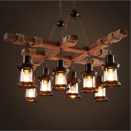 Special Offer 복고풍 산업 바람 샹들리에 미국 국가 카페 레스토랑 바 의류 매장 로프트 창조적인 개성 단단한 나무 램프 Discount (40%OFF) Today!