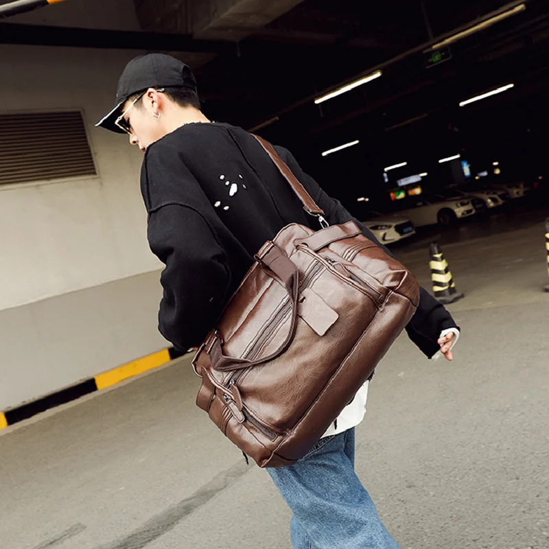 Product Name: 브랜드 가죽 PU 남성 여행 대용량 다기능 휴대용 더플 가방, 캐주얼 크로스 바디 체육관 탑승 가방