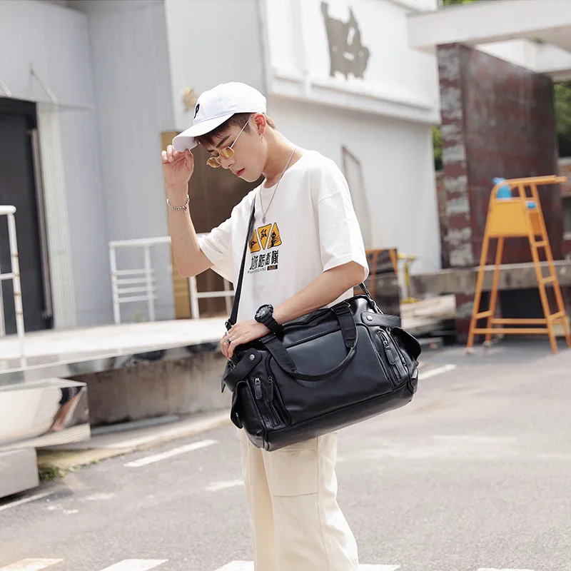 Product Name: 남성용 대용량 핸드백 여행 휴대용 더플 백 방수 부드러운 가죽 PU 숄더 크로스 바디 체육관 탑승 가방 유행