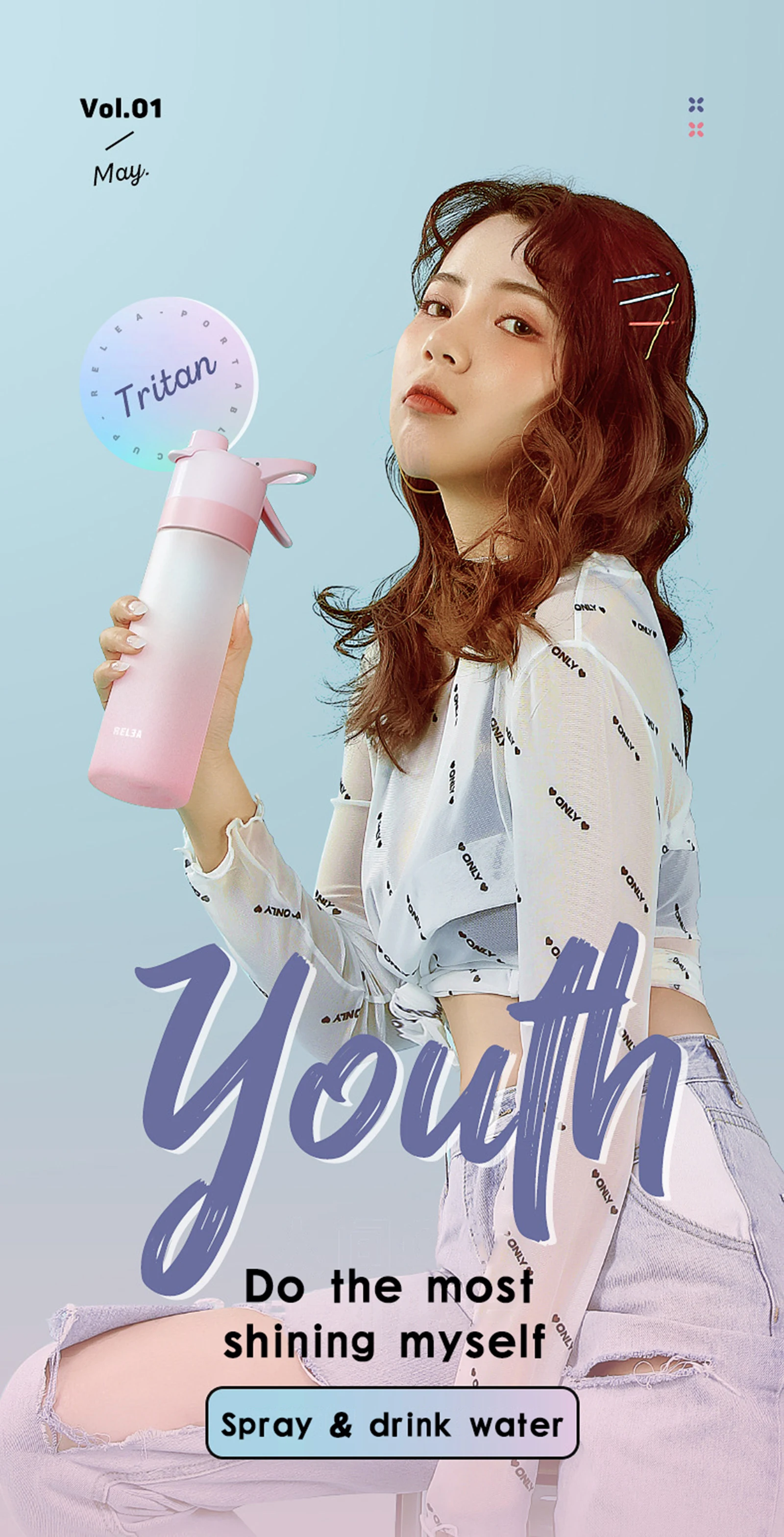 Product Name: 스프레이 시원한 여름 스포츠 물병 휴대용 등산 야외 사이클링 자전거 셰이커 체육관 스포츠 병 선물 색상 단색 플라스틱