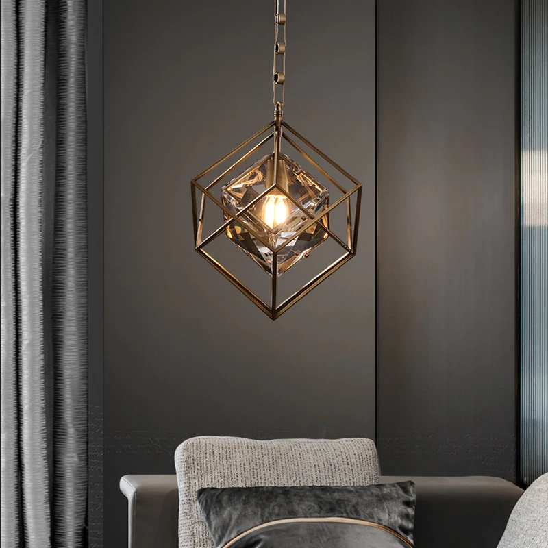 Product Name: 포스트 모던 크리스탈 LED 펜던트 조명 바 레스토랑 크리에이티브 서스펜션 조명기구 현관 복도 산업 구리 행잉 램프, 포스트 모던